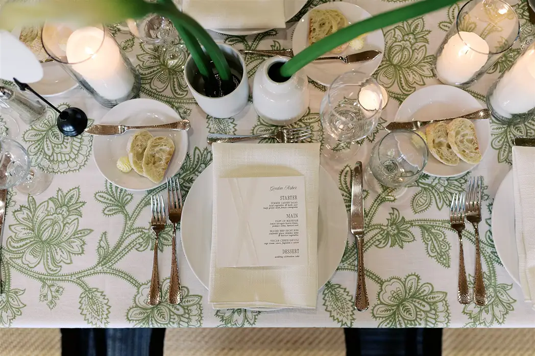 This cohesive tabletop selection ensured consistency across all guest settings while supporting a full dining and beverage experience.