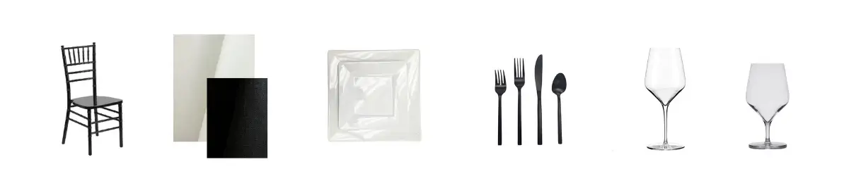 Pearl & Noir Place Setting Rentals Pearl & Noir Black Chiavari Chair Rentals